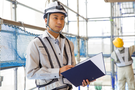 足場工事とは、建築現場など高所で作業をする際に、足元を支える足場の工事のこと。